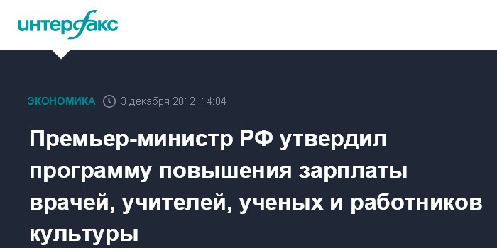 Премьер-министр РФ утвердил программу повышения зарплаты врачей, учителей, ученых и работников культуры