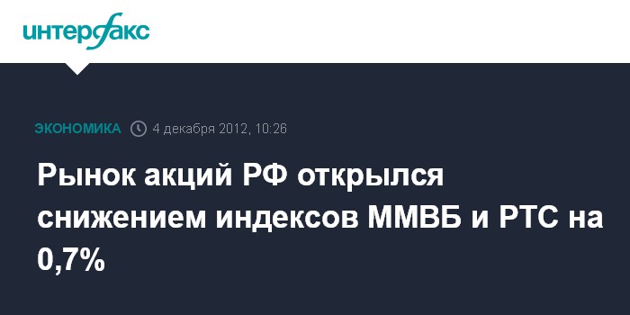 Рынок акций РФ открылся снижением индексов ММВБ и РТС на 0,7%