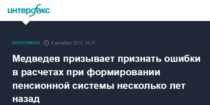 Горки. 4 декабря. INTERFAX.RU - Премьер-министр РФ Дмитрий Медведев считает, что при формировании пенсионной системы, разделенной на накопительную и распределительную части, были сделаны ошибки в расчетах.