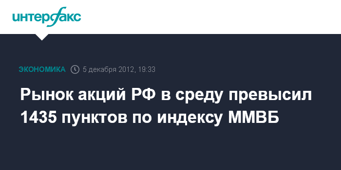 Рынок акций РФ в среду превысил 1435 пунктов по индексу ММВБ