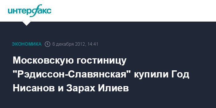 Московскую гостиницу "Рэдиссон-Славянская" купили Год Нисанов и Зарах Илиев