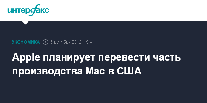 Купертино. 6 декабря. INTERFAX.RU - Apple Inc. планирует вложить свыше $100 млн в 2013 году, чтобы частично вернуть производство компьютеров Mac из Китая и других азиатских стран в США, заявил глава компании Тим Кук в интервью изданию Bloomberg Businessweek.