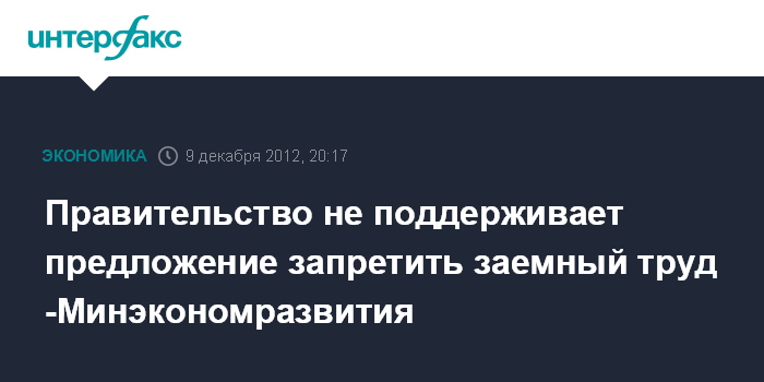 Правительство не поддерживает предложение запретить заемный труд -Минэкономразвития
