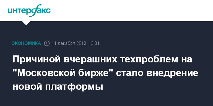 Причиной вчерашних техпроблем на "Московской бирже" стало внедрение новой платформы