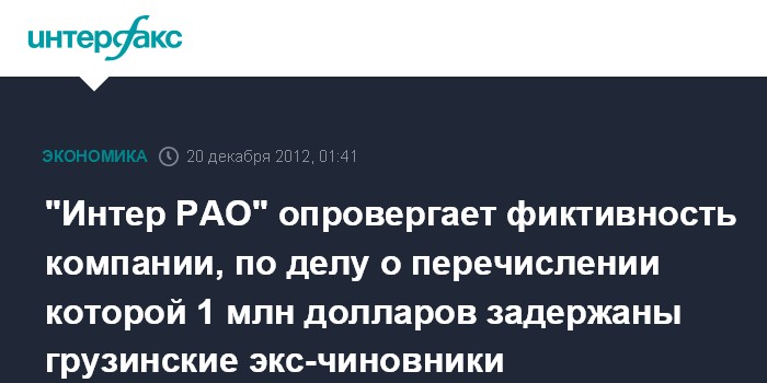 "Интер РАО" опровергает фиктивность компании, по делу о перечислении которой 1 млн долларов задержаны грузинские экс-чиновники