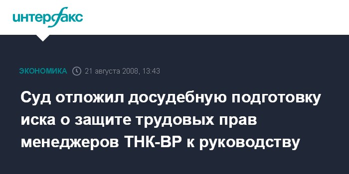 Суд отложил досудебную подготовку иска о защите трудовых прав менеджеров ТНК-ВР к руководству