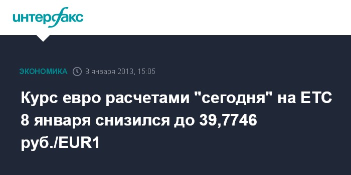 Курс евро расчетами "сегодня" на ЕТС 8 января снизился до 39,7746 руб./EUR1