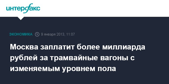 Москва. 9 января. INTERFAX.RU - Департамент транспорта и развития дорожно-транспортной инфраструктуры столицы объявил открытый аукцион в электронной форме на поставку 67 трамвайных вагонов большой вместимости с переменным уровнем пола.