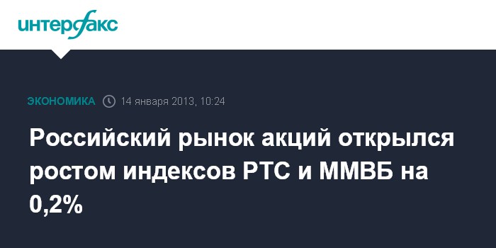Российский рынок акций открылся ростом индексов РТС и ММВБ на 0,2%