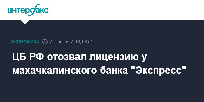 ЦБ РФ отозвал лицензию у махачкалинского банка "Экспресс"
