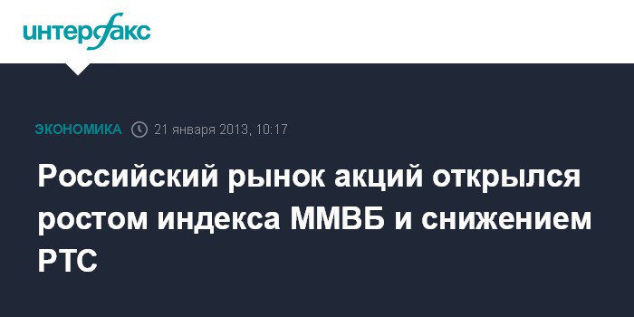 Российский рынок акций открылся ростом индекса ММВБ и снижением РТС