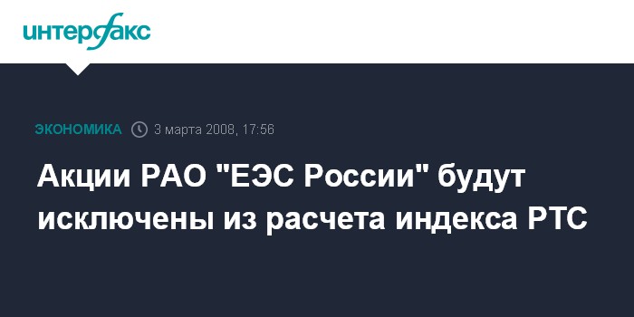 Таким образом, последним днем учета акций РАО "ЕЭС России" в индексе РТС будет 30 апреля 2008 г.