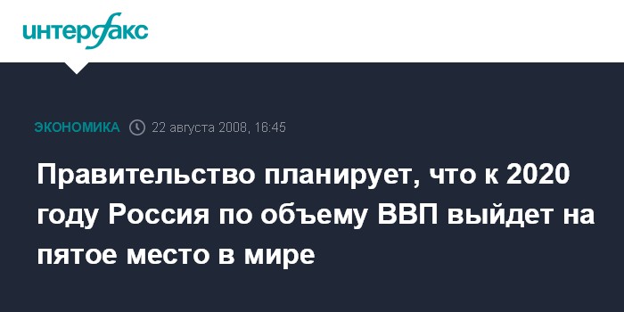 Правительство планирует, что к 2020 году Россия по объему ВВП выйдет на пятое место в мире