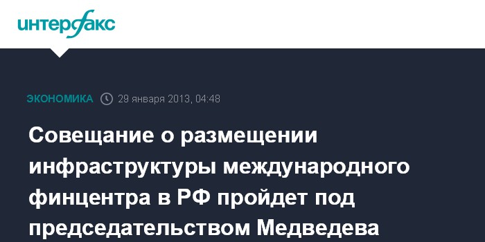 Совещание о размещении инфраструктуры международного финцентра в РФ пройдет под председательством Медведева