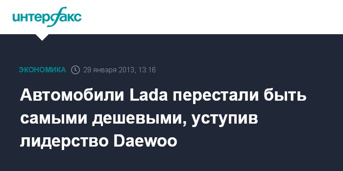 Автомобили Lada перестали быть самыми дешевыми, уступив лидерство Daewoo