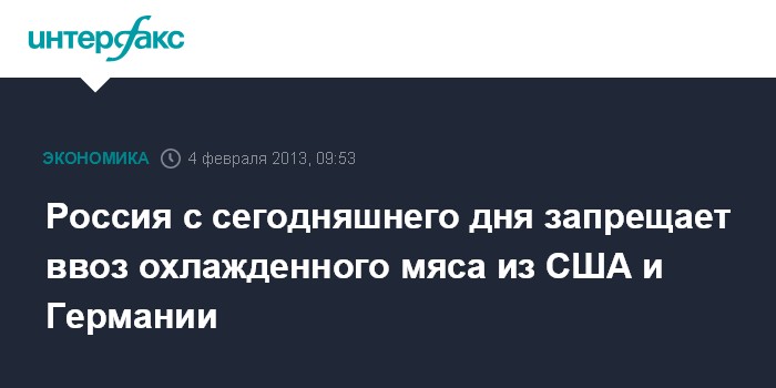 Москва. 4 февраля. INTERFAX.RU - С сегодняшнего дня Россия запрещает ввоз охлажденного мяса из США и Германии, сообщает Россельхознадзор. Ограничения поставок мяса из США связаны с тем, что американская сторона, несмотря на неоднократные просьбы российской службы, не представила информацию о мерах по предотвращению ввоза в РФ продукции, произведенной с использованием рактопамина (стимулятор роста мышечной ткани).