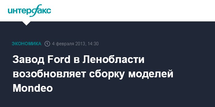 Завод Ford в Ленобласти возобновляет сборку моделей Mondeo