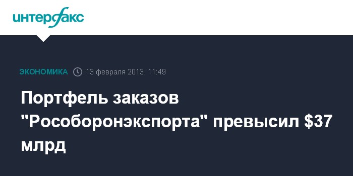 Москва. 13 февраля. INTERFAX.RU - "Рособоронэкспорт" сформировал портфель заказов на поставку вооружений и военной техники объемом более $37 миллиарда.