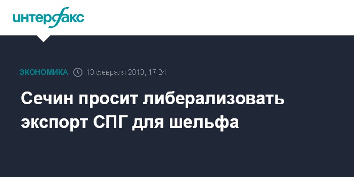 Ново-Огарево.13 февраля. INTERFAX.RU - Президент "Роснефти" Игорь Сечин на заседании президентской комиссии по ТЭК высказался за либерализацию экспорта СПГ для шельфа.