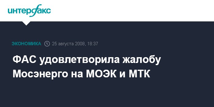 ФАС удовлетворила жалобу Мосэнерго на МОЭК и МТК