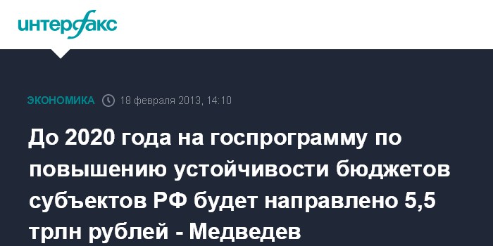 До 2020 года на госпрограмму по повышению устойчивости бюджетов субъектов РФ будет направлено 5,5 трлн рублей - Медведев