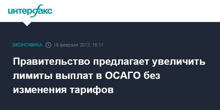 Согласно представленным правительством поправкам, планируется увеличить лимиты выплат по ущербу жизни и здоровью пострадавших со 160 тыс. до 500 тыс. рублей с отсрочкой введения нормы через 15 месяцев с момента принятия закона.