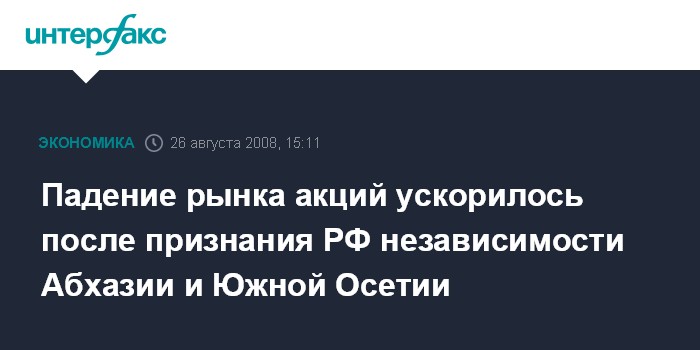 Падение рынка акций ускорилось после признания РФ независимости Абхазии и Южной Осетии