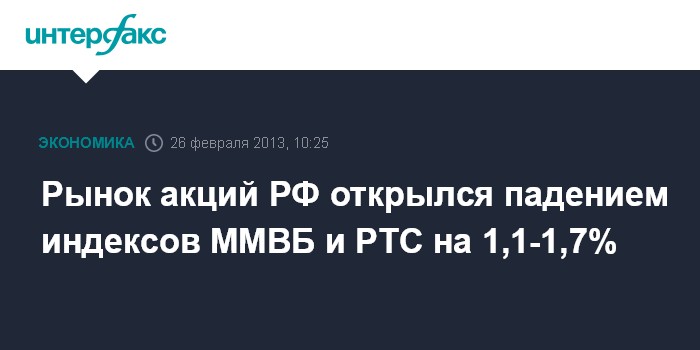 Рынок акций РФ открылся падением индексов ММВБ и РТС на 1,1-1,7%