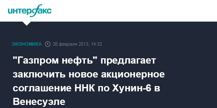 "Газпром нефть" предлагает заключить новое акционерное соглашение ННК по Хунин-6 в Венесуэле