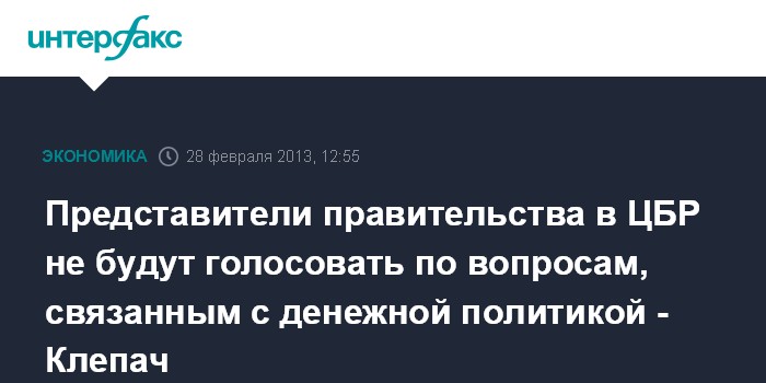 Представители правительства в ЦБР не будут голосовать по вопросам, связанным с денежной политикой - Клепач