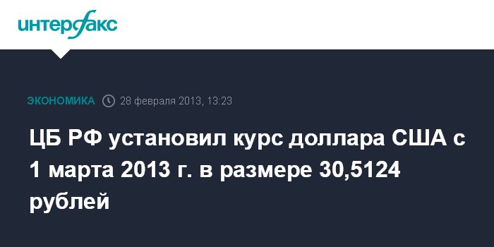 ЦБ РФ установил курс доллара США с 1 марта 2013 г. в размере 30,5124 рублей