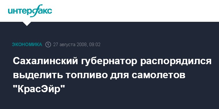 Для этого губернатор обязал региональный департамент транспорта максимально быстро организовать доставку топлива из госрезерва (24 тыс. тонн) в аэропорт Южно-Сахалинска для самолетов "КрасЭйр", а на перспективу проработать вопрос о привлечении в аэропорт более серьезных и солидных топливных компаний, сообщает управление информации обладминистрации.