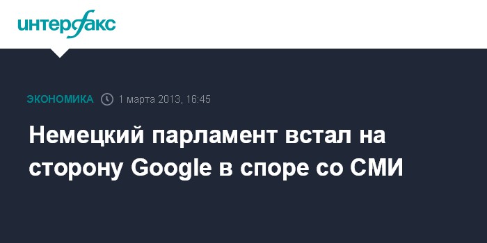 Берлин. 1 марта. INTERFAX.RU - Германский Бундестаг в пятницу подтвердил право Google Inc. и других новостных агрегаторов бесплатно показывать фрагменты новостей на собственных сайтах, сообщает агентство Bloomberg.