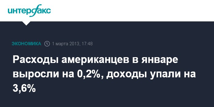 1 марта. FINMARKET.RU - Расходы населения США в январе 2013 года выросли на 0,2% по сравнению с предыдущим месяцем, когда их рост также составлял 0,2%, свидетельствуют данные министерства торговли страны.