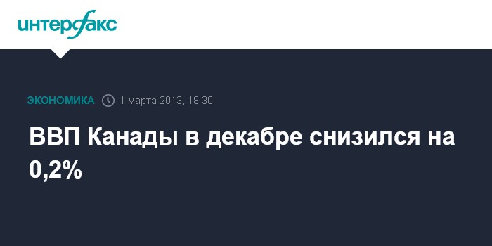 1 марта. FINMARKET.RU - Валовой внутренний продукт (ВВП) Канады в декабре 2012 года сократился на 0,2% после роста на 0,3% в ноябре сообщает Статистическое управление страны.