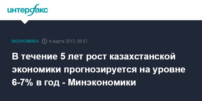 4 марта. FINMARKET.RU - В 2013-2017 годах рост ВВП Казахстана прогнозируется на уровне 6-7% ежегодно, сообщил сегодня министр экономики и бюджетного планирования республики Ерболат Досаев в ходе "правительственного часа" в нижней палате парламента в Астане.