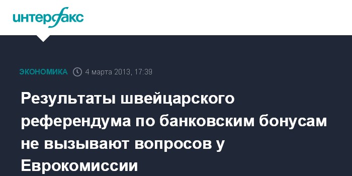 Результаты швейцарского референдума по банковским бонусам не вызывают вопросов у Еврокомиссии
