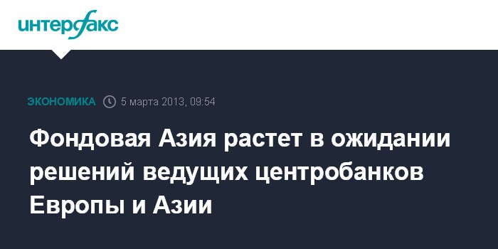 5 марта. FINMARKET.RU - Фондовые рынки Азиатско-Тихоокеанского региона демонстрируют повышательный настрой во вторник в ожидании решений ведущих центральных банков Европы и Азии, сообщает Bloomberg.