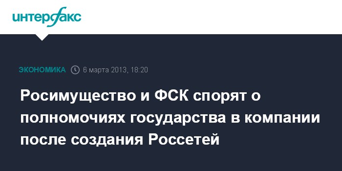 Росимущество и ФСК спорят о полномочиях государства в компании после создания Россетей