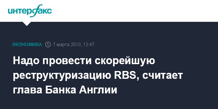 Надо провести скорейшую реструктуризацию RBS, считает глава Банка Англии