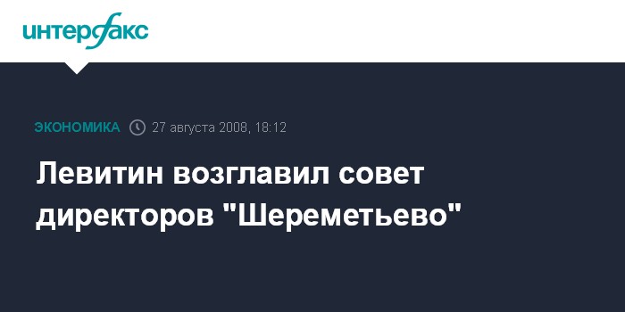 Москва. 27 августа. INTERFAX.RU - Совет директоров ОАО "Международный аэропорт Шереметьево" (МАШ) на заседании в среду избрал председателем совета министра транспорта РФ Игоря Левитина, сообщили "Интерфаксу" в министерстве транспорта.