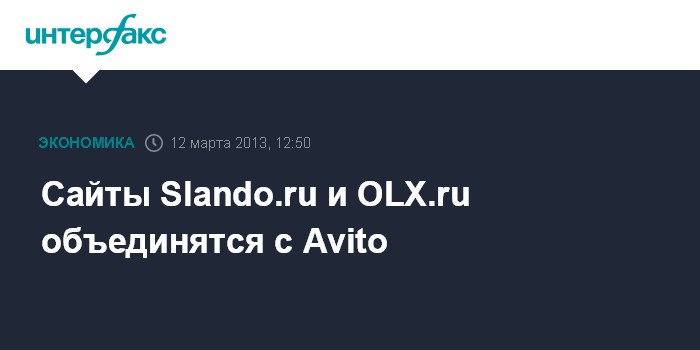 Лондон. 12 марта. INTERFAX.RU - Южноафриканский медиа-холдинг Naspers принял решение слить два принадлежащих ему российских сайта частных объявлений Slando.ru и OLX.ru с их конкурентом Avito.ru, сообщил во вторник один из акционеров Avito компания Vostok Nafta (владеет 13,8% ресурса).