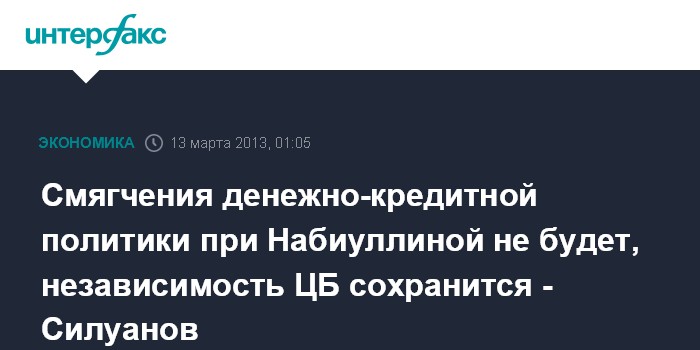 Смягчения денежно-кредитной политики при Набиуллиной не будет, независимость ЦБ сохранится - Силуанов