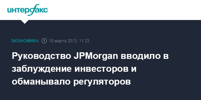 Руководство JPMorgan вводило в заблуждение инвесторов и обманывало регуляторов