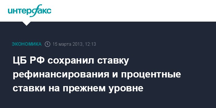 15 марта. FINMARKET.RU - Совет директоров ЦБ РФ сегодня принял решение оставить без изменения уровень ставки рефинансирования и процентных ставок по операциям Банка России.