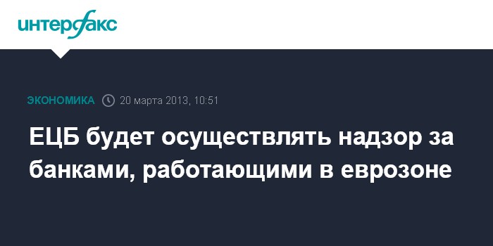 Ранее сообщалось, что с начала 2014 года ЕЦБ приступит к осуществлению прямого надзора над первой группой банков еврозоны - всего около 200 кредитных организаций, а с 1 апреля регулирование будет осуществляться в полном объеме для всех финкомпаний.