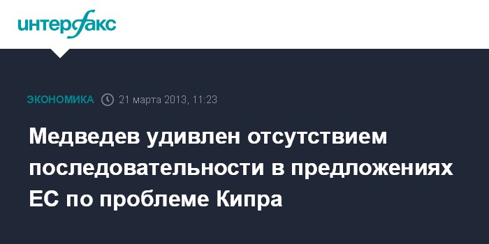 Москва. 21 марта. INTERFAX.RU - Премьер-министр РФ Дмитрий Медведев назвал непредсказуемой и непоследовательной предложенную ЕС схему урегулирования проблемы Кипра.