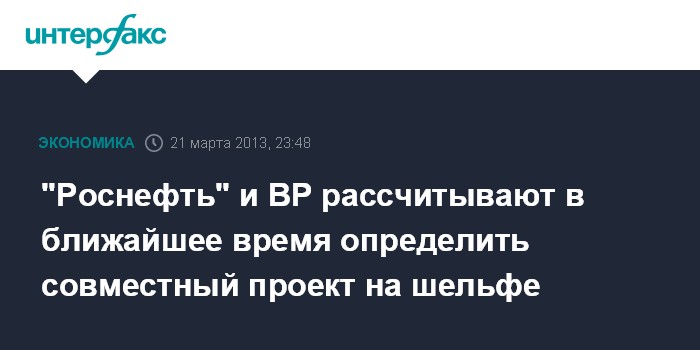 Лондон. 21 марта. INTERFAX.RU - "Роснефть" и ВР рассчитывают в ближайшее время определить совместный проект на шельфе, сообщил на пресс-конференции президент российской компании Игорь Сечин.