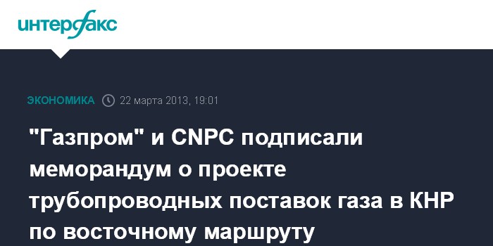 "Газпром" и CNPC подписали меморандум о проекте трубопроводных поставок газа в КНР по восточному маршруту