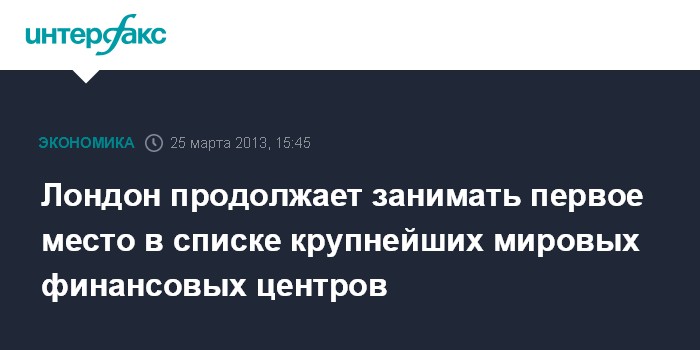 Лондон продолжает занимать первое место в списке крупнейших мировых финансовых центров